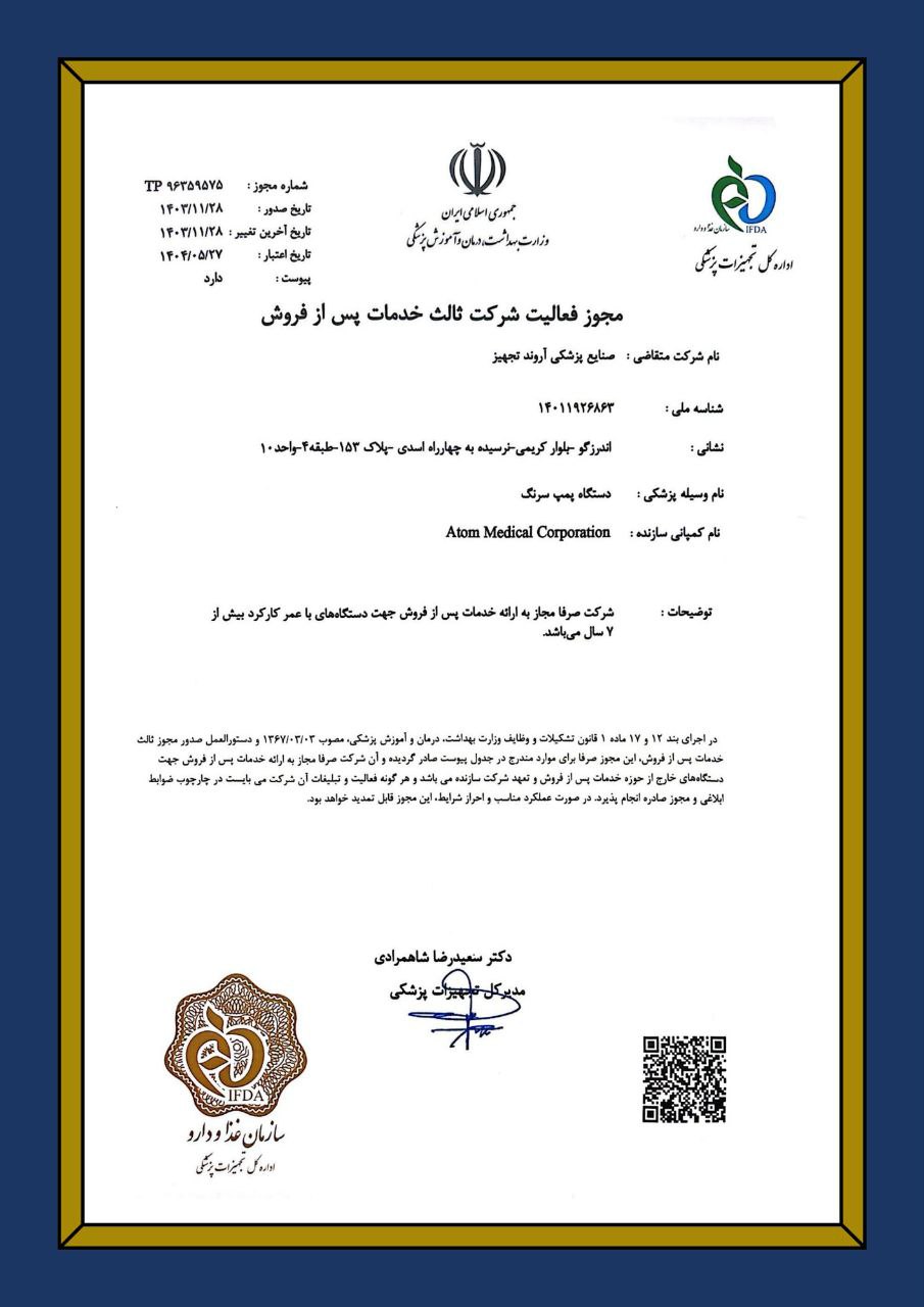 صنایع پزشکی آروند تجهیز با کسب گواهیها، جوایز و تقدیرهای معتبر، توان فنی و تعهد خود به کیفیت خدمات و تجهیزات پزشکی را به اثبات رسانده است. این دستاوردها تضمینی برای اعتماد و اطمینان شما در استفاده از خدمات و محصولات ما هستند.